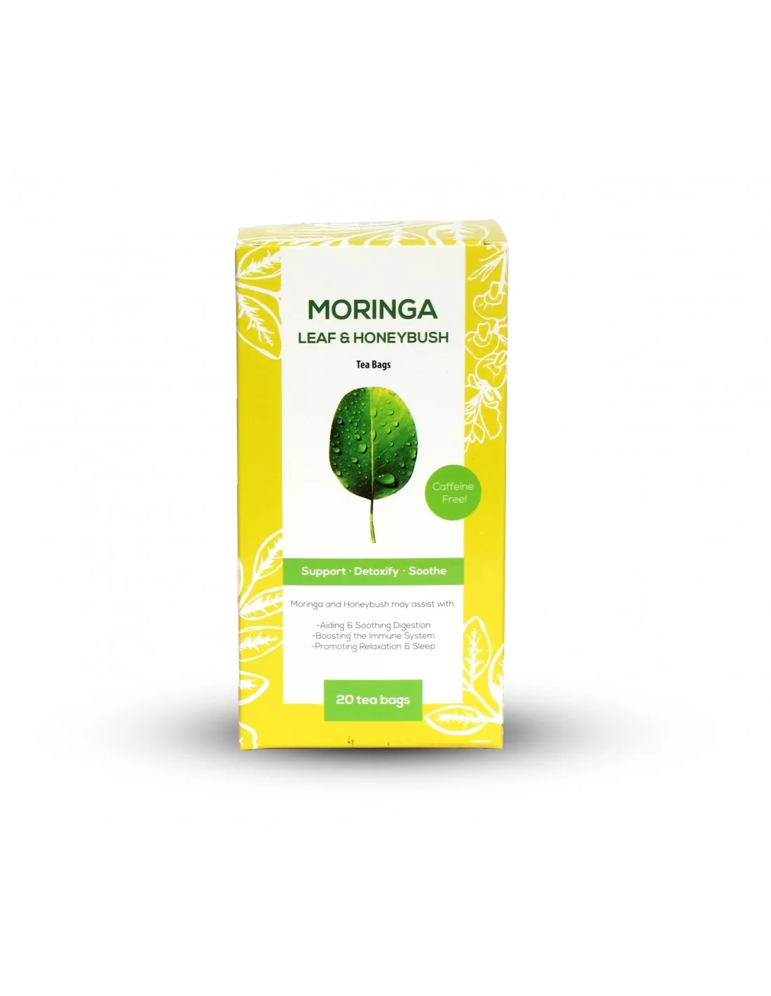 Naturally sweet, soothing, and full of goodness—Moringa & Honeybush Herbal Tea is a deliciously balanced blend of nutrient-rich moringa leaves and South African honeybush, known for its naturally sweet, honey-like flavor and calming properties.